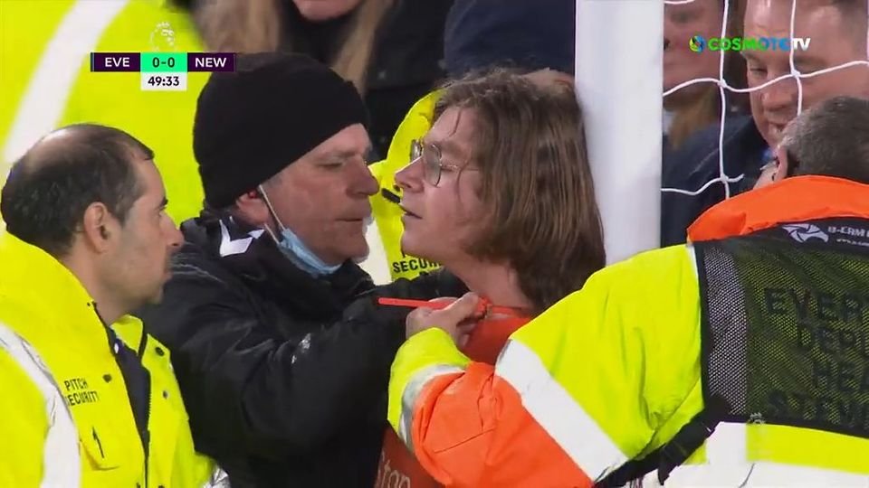Οι άνθρωποι της Έβερτον και οι σεκιούριτι του γηπέδου κινητοποιήθηκαν άμεσα και κατάφεραν να τον βγάλουν εκτός αγωνιστικού χώρου μετά από περίπου δέκα λεπτά.