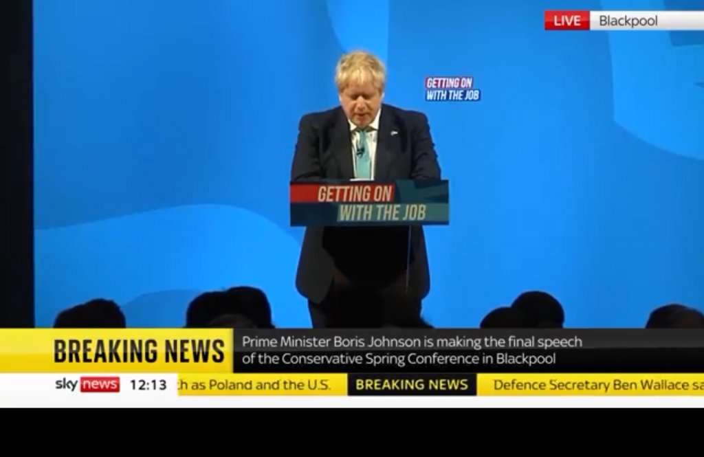 Μιλώντας σε συνέδριο του κυβερνώντος Συντηρητικού κόμματος στο Μπλάκπουλ ο Τζόνσον υπογράμμισε ότι η Βρετανία στηρίζει αναφανδόν τον λαό της Ουκρανίας. «Κάθε μέρα που συνεχίζεται η ηρωική αντίσταση της Ουκρανίας, καθίσταται σαφές ότι ο Πούτιν διέπραξε ένα καταστροφικό λάθος», τόνισε.