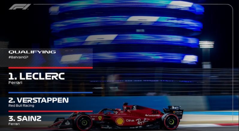 Η Ferrari έκλεψε την παράσταση στις πρώτες κατατακτήριες δοκιμές της νέας εποχής της Formula 1 στο Μπαχρέιν. Ο Σαρλ Λεκλέρκ σημείωσε τον καλύτερο χρόνο στην πίστα του Σακχίρ και θα ξεκινήσει τον αγώνα της Κυριακής από την pole position. Δίπλα του θα έχει τον Μαξ Φερστάπεν της Red Bull Racing, ενώ ο Κάρλος Σάινθ με το δεύτερο κόκκινο μονοθέσιο θα είναι 3ος. Ο Σέρχιο Πέρες πήρε την 4η θέση, μπροστά από τον Λούις Χάμιλτον που περιορίστηκε στην 5η θέση.