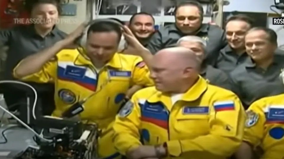 Τρεις Ρώσοι κοσμοναύτες εμφναίστηκαν στον Διεθνή Διαστημικό Σταθμό φορώντας κίτρινες φόρμες και μπλε λεπτομέρειες, που παρέπεμπαν στα χρώματα της ουκρανικής σημαίας. Προς το παρόν δεν κατέστη σαφές εάν η συγκεκριμένη κίνηση ήταν εσκεμμένη έτσι ώστε να εκπέμψει κάποιο μήνυμα με αποδέκτες το Κρεμλίνο και την ρωσική κυβέρνηση.