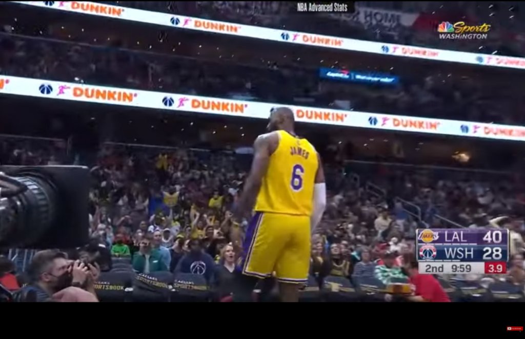 Με 5:20 για το τέλος της δεύτερης περιόδου, ο Λεμπρόν πέτυχε το δίποντο που τον έφερε πάνω από τον Καρλ Μαλόουν στη λίστα με τους κορυφαίους σκόρερ, στην ιστορία του NBA. Οι θεατές που βρίσκονταν στο γήπεδο ενημερώθηκαν για το κατόρθωμα του ηγέτη των Λέικερς, από τις γιγαντοθόνες, και χάρισαν στον Λεμπρόν ένα υπέροχο standing ovation. Με τους 38 πόντους που πέτυχε, κόντρα στους Γουίζαρντς, ο 37χρονος φόργουορντ έχει 36.947 πόντους στην καριέρα του στο κορυφαίο πρωτάθλημα μπάσκετ στον κόσμο. Επόμενος στόχος του, η κορυφή, εκεί όπου βρίσκεται ο Καρίμ Αμπντούλ Τζαμπάρ με 38.387 πόντους.