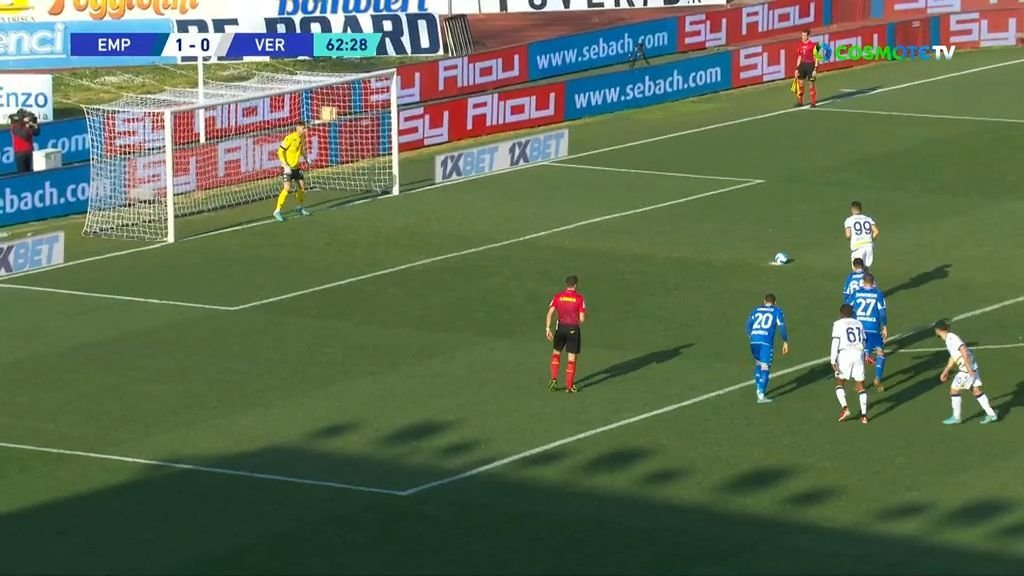 Ο πρώτος σκόρερ της Βερόνα αστόχησε στην πρώτη εκτέλεση που ανέλαβε, ο διαιτητής διέταξε επανάληψη, αλλά ο Αργεντινός δε βρήκε ξανά στόχο στέλνοντας τη μπάλα στο δοκάρι
