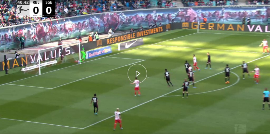 Οι γηπεδούχοι στάθηκαν άτυχοι σε δύο περιπτώσεις. Όταν το δυνατό μακρινό σουτ του Σιμακάν στο 26’ σταμάτησε αρχικά στον Τραπ και μετά στο δοκάρι της εστίας των φιλοξενούμενων. Ενώ στο 41ο λεπτό ήταν η σειρά του Λάιμερ να δει το δοκάρι να λέει «όχι» στο σουτ του από τα 20 μέτρα που θα σήμαινε το 1-0 υπέρ της Λειψίας. Νωρίτερα, στο 22’, ο Χίντερεγκερ έδιωξε πάνω στην γραμμή την κεφαλιά του Σίλβα, από σέντρα του Καμπλ, ενώ με την Άιντραχτ σε παθητικό ρόλο και στην επανάληψη οι γηπεδούχοι σπατάλησαν δύο ακόμα καλές ευκαιρίες.