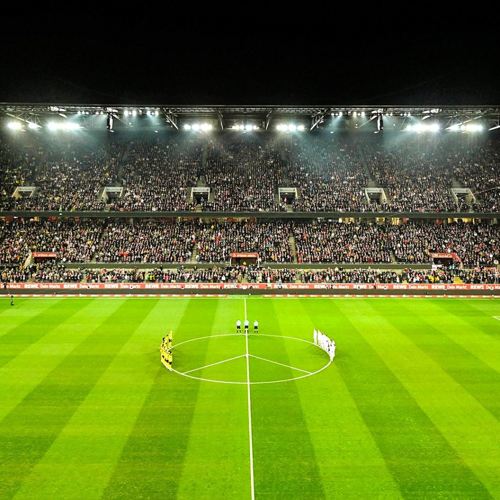 Το σύμβολο της ειρήνης έχει σχηματιστεί στο κέντρο του γηπέδου της Κολωνίας η οποία αντιμετωπίζει την Ντόρτμουντ. Είναι ένα μήνυμα για να μπει ένα τέλος στον πόλεμο στην Ουκρανία και στο δράμα του ουκρανικού λαού.