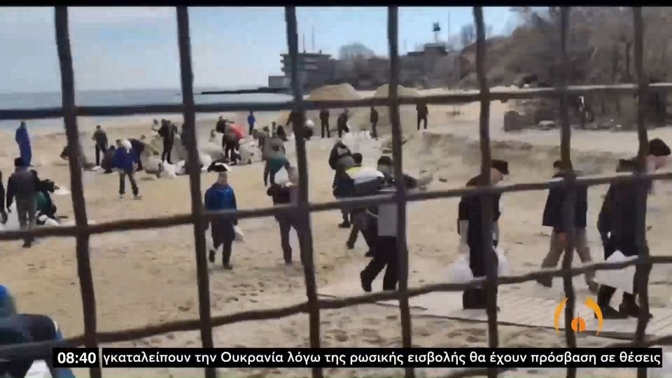 Συγκεκριμένα, στο απόσπασμα το οποίο κυκλοφορεί, μικρά παιδιά, έφηβοι αλλά και ηλικιωμένοι άνδρες σκάβουν την παραλία της Οδησσού και γεμίζουν σακιά με άμμο τα οποία μεταφέρονται σε όποια σημεία της πόλης υπάρχει ανάγκη να στηθούν οδοφράγματα προκειμένου να εμποδιστεί με κάθε τρόπο η πιθανή προσπάθεια των Ρώσων να εισέλθουν στην πόλη.