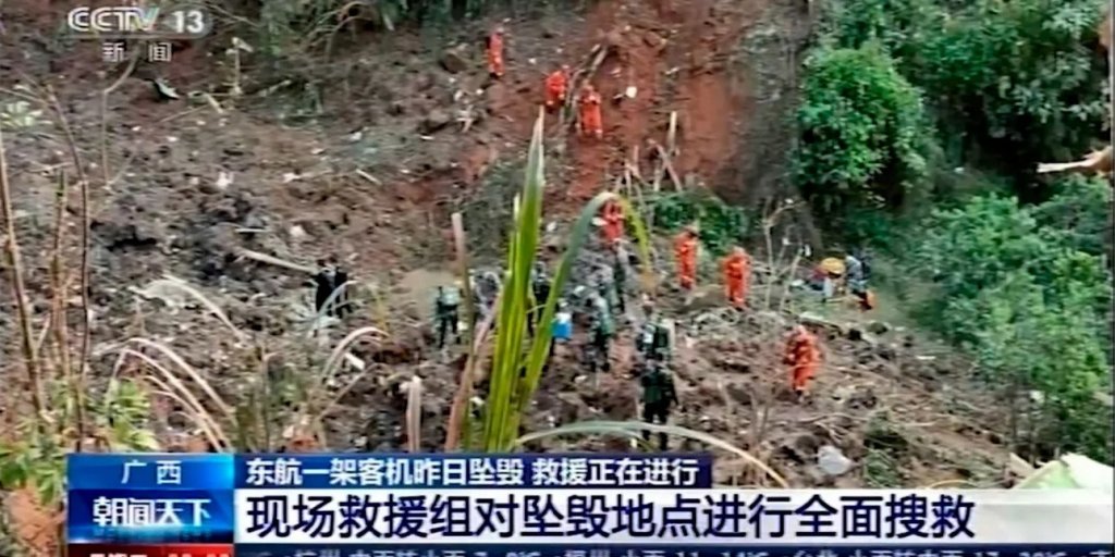 Βίντεο που αναρτήθηκαν από τα κρατικά μέσα ενημέρωσης της Κίνας έδειχναν μικρά κομμάτια του Boeing 737-800 διάσπαρτα στην περιοχή.