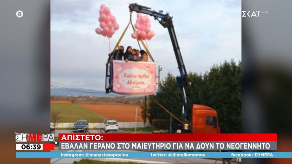 Ένα απίστευτο περιστατικό εκτυλίχθηκε έξω από μαιευτήριο στην Δράμα, με έναν πατέρα να βάζει γερανό έτσι ώστε να δουν οι συγγενείς τους το νεογέννητο!