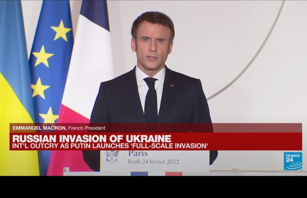 Σε συνέντευξη που παραχώρησε στο France 3, ο Γάλλος πρόεδρος ερωτήθηκε για το χαρακτηρισμό «χασάπης» που χρησιμοποίησε ο Μπάιντεν για τον Πούτιν. Σύμφωνα με τη Deutsche Welle, ο Μακρόν υποστήριξε ότι αυτές οι δηλώσεις αποτελούν «λεκτική κλιμάκωση» της αντιπαράθεσης, και σημείωσε ότι «εγώ δεν θα χρησιμοποιούσα αυτά τα λόγια».