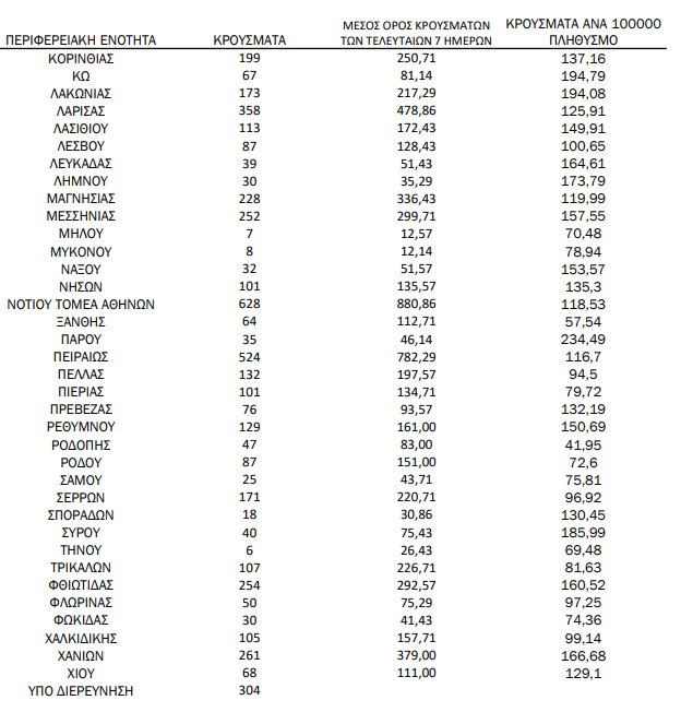 Τέλος, 304 κρούσματα βρίσκονται υπό διερεύνηση.
