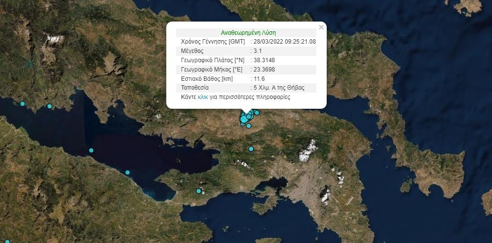 Πάλι... κουνήθηκε η Θήβα καθώς νωρίς το μεσημέρι της Δευτέρας (28/3) σημειώθηκε νέα σεισμική δόνηση 3,1 ρίχτερ.