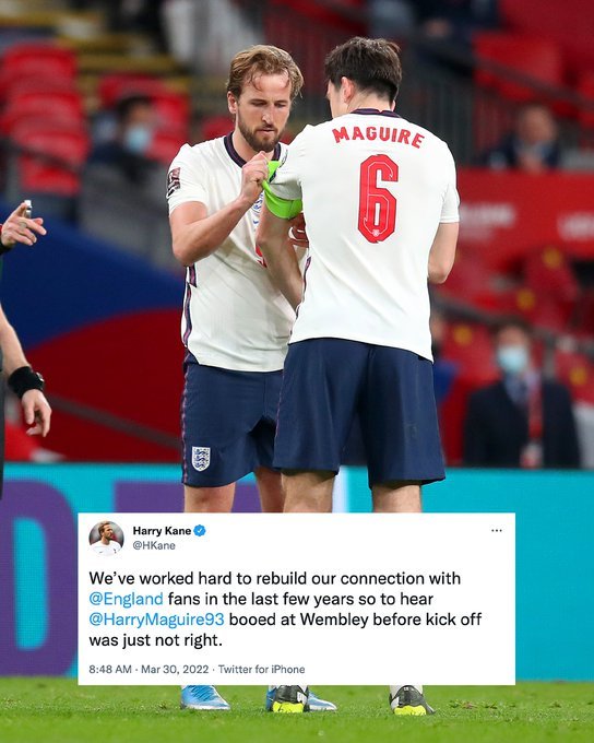 Τοποθέτηση στήριξης υπέρ του Χάρι Μαγκουάιρ πραγματοποίησε η Τότεναμ μέσω των κοινωνικών μέσων δικτύωσης, μετά τις έντονες αποδοκιμασίες που άκουσε ο αρχηγός της Μάντσεστερ Γιουνάιτεντ κατά τη διάρκεια του φιλικού της εθνικής Αγγλίας με την Ακτή Ελεφαντοστού.