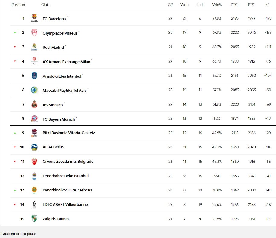 Μετά τα αποτελέσματα της 33ης αγωνιστικής, έκλεισαν οριστικά οι 8 ομάδες που θα βρεθούν στα playoffs της Ευρωλίγκας και θα διεκδικήσουν θέση στο Final Four της διοργάνωσης.