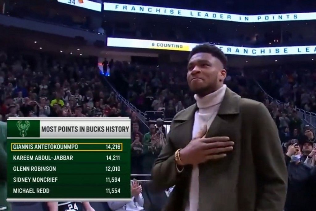 Οι φίλοι των Μπακς χάρισαν ένα συγκλονιστικό standing ovation στον Έλληνα φόργουορντ, για το γεγονός ότι ξεπέρασε τον Καρίμ Αμπντούλ-Τζαμπάρ και ανέβηκε στην 1η θέση των σκόρερ στην ιστορία των Μπακς, σε ένα σπουδαίο επίτευγμα.