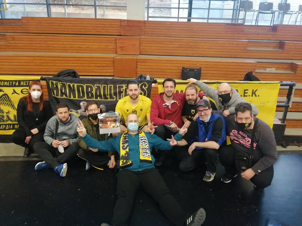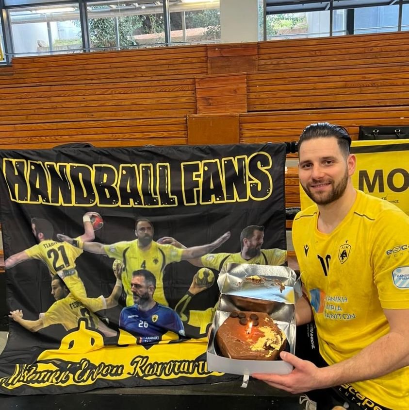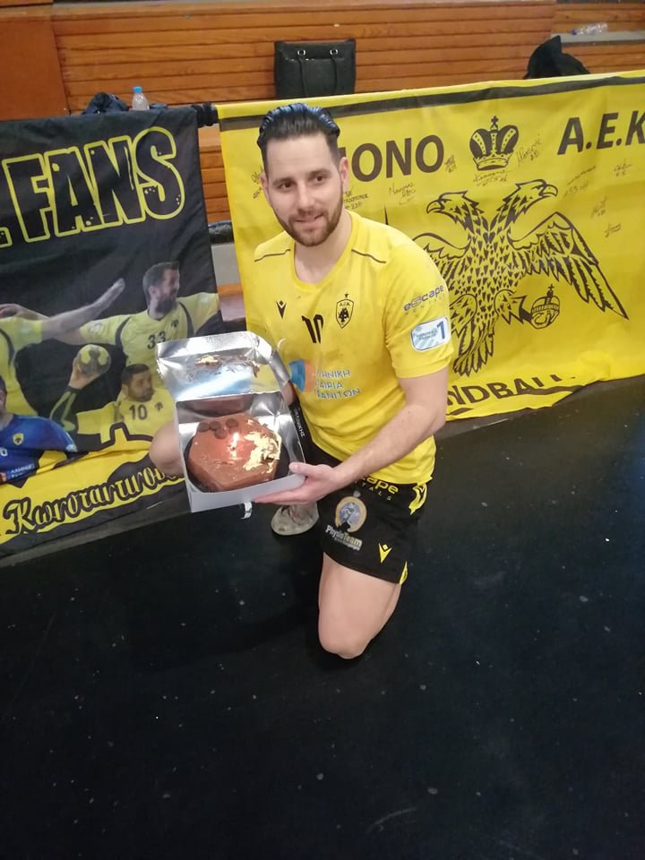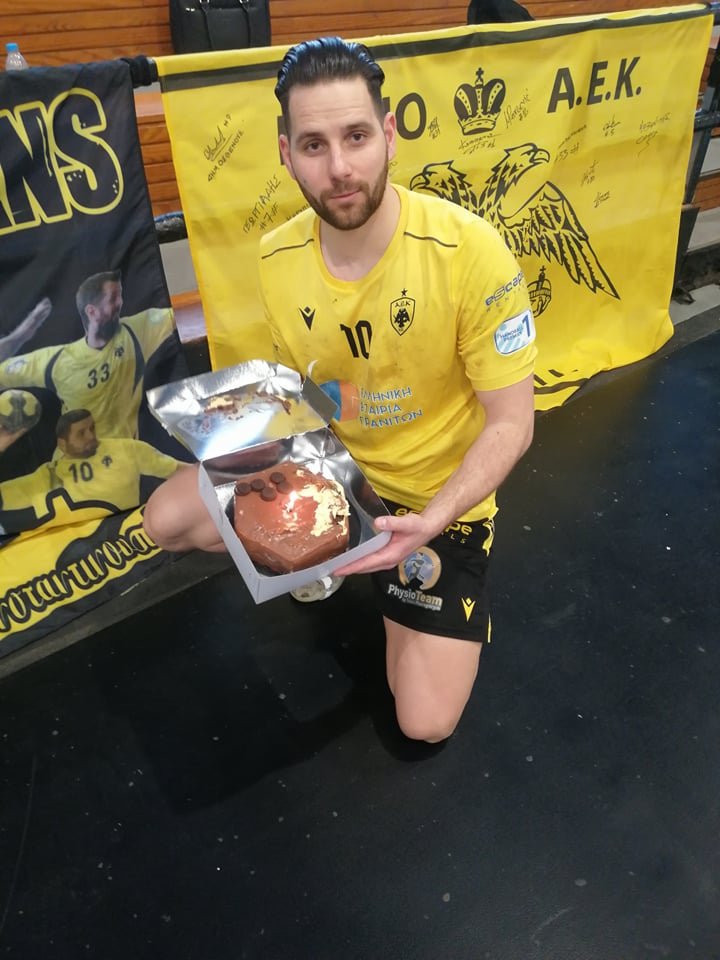Η ομάδα χάντμπολ της ΑΕΚ πήρε μια άνετη νίκη επί της Πυλαίας στο ΟΑΚΑ και αυτό ήταν το καλύτερο δώρο για τον Πανιώτη Νικολαϊδη. Ο αρχηγός της ΑΕΚ γιορτάζει σήμερα, τα γενέθλιά του και οι οπαδοί της Ένωσης, μετά το τέλος της αναμέτρησης θέλησαν να του κάνουν έκπληξη με μια τούρτα και να του ευχηθούν να σηκώσει πολλούς τίτλους ακόμα με την «κιτρινόμαυρη» φανέλα.
