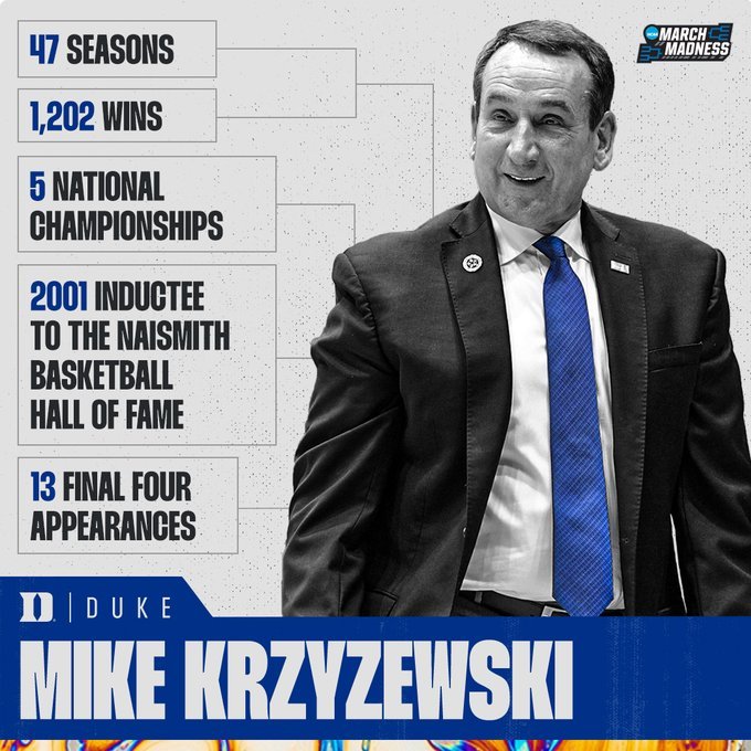 H North Carolina ηττήθηκε στον ημιτελικό του NCAA από το North Carolina και έτσι μπήκαν οι τίτλοι τέλους στην σπουδαία καριέρα ενός θρυλικού προπονητή, του τεράστιου Μάικ Σιζέφκσι. Ο coach K αφήνει τους πάγκους μετά από 1202 νίκες στο NCAA (ποσοστό 76%). Έκατσε στον πάγκο του Duke από το 1980 μέχρι σήμερα και το οδήγησε σε 5 πρωταθλήματα, 9 τελικούς και 13 Final 4, ενώ κατέκτησε χρυσό με την Team USA σε τρεις Ολυμπιακούς Αγώνες (2008, 2012, 2016) και δύο Παγκόσμια (2010,2014).