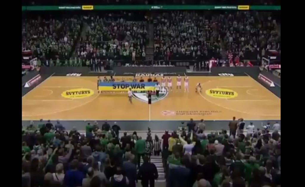 Πριν από το τζάμπολ, οπαδοί της Ζάλγκιρις αποδοκίμασαν, έντονα, τους παίκτες του Ερυθρού Αστέρα, όταν εκείνοι αρνήθηκαν να κρατήσουν, μαζί με τους παίκτες της Ζάλγκιρις, πανό που έγραφε "Stop War" και αφορούσε στη ρωσική στρατιωτική επέμβαση στην Ουκρανία.
