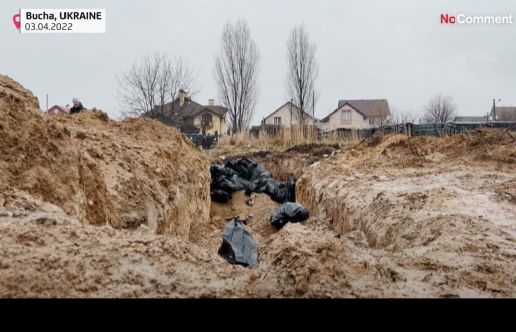 Η Maxar Technologies, η οποία συλλέγει και δημοσιεύει δορυφορικές εικόνες από την Ουκρανία, τόνισε ότι τα πρώτα σημάδια ανασκαφής για ομαδικό τάφο στην εκκλησία του Αγίου Ανδρέα και του Πιερβοζβάνοχο των Αγίων Πάντων έγιναν ορατά στις 10 Μαρτίου.