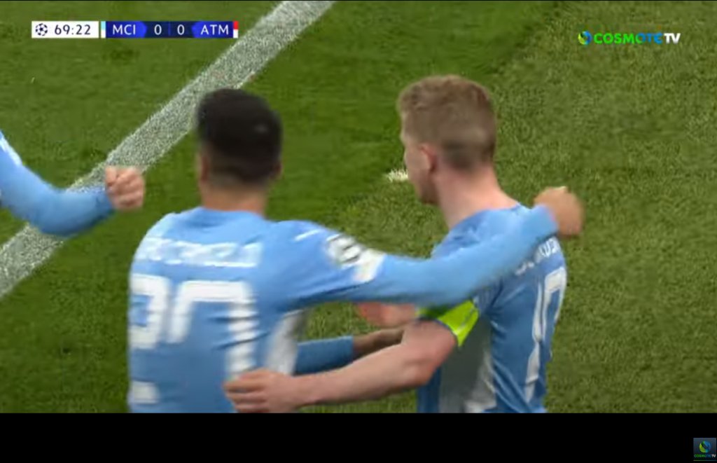 Την ασίστ του Φιλ Φόντεν αξιοποίησε, στο 70', ο Κέβιν Ντε Μπρόινε, ο οποίος πέτυχε το γκολ, με το οποίο η Μάντσεστερ Σίτι επικράτησε 1-0 της Ατλέτικο Μαδρίτης, στο πρώτο παιχνίδι για τα προημιτελικά του Τσάμπιονς Λιγκ.
