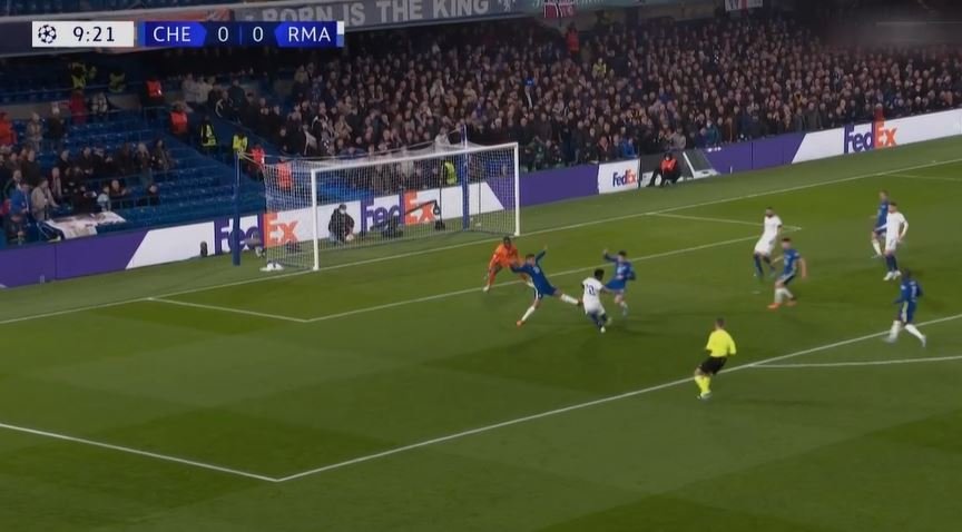 Η Ρεάλ έβγαλε ιδανική κόντρα που ξεκίνησε από τακουνάκι του Μπενζεμά, ο Βαλβέρδε άνοιξε αριστερά στον Βινίσιους που έφερε την μπάλα στο δεξί αλλά σούταρε στο δοκάρι από το πέναλτι.