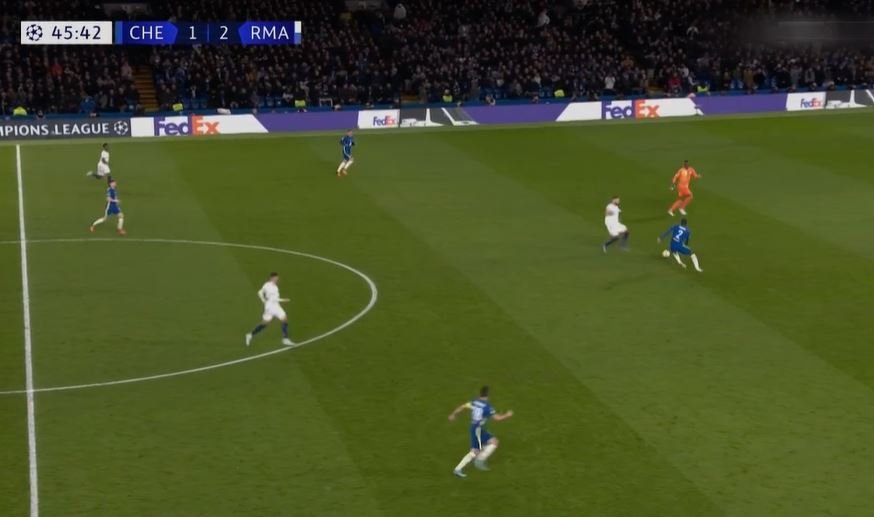 Ο Μεντί βγήκε πολύ έξω από την περιοχή του, κοντρόλαρε και προσπάθησε να δώσει στον Ρίντιγκερ αλλά ο Μπενζεμά έκλεψε και πλάσαρε από μακριά στο κενό τέρμα για το 1-3.