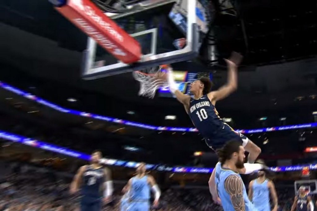 Ο 21χρονος σέντερ των Πέλικανς... ισοπέδωσε τον Άνταμς των Γκρίζλις και προσέφερε ένα εντυπωσιακό κάρφωμα, στην κορυφαία φάση των αγώνων, που έγιναν τα ξημερώματα