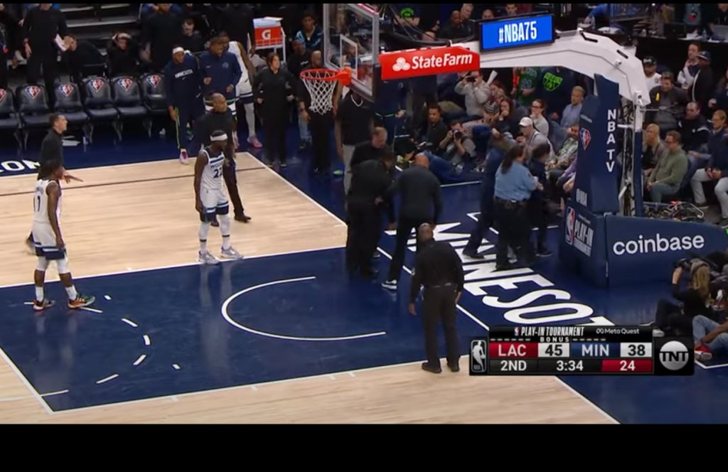 Στη δεύτερη περίοδο του Μινεσότα Τίμπεργουλβς-Λος Άντζελες Κλίπερς, για το play-in τουρνουά του NBA, σημειώθηκε ένα ασυνήθιστο περιστατικό.