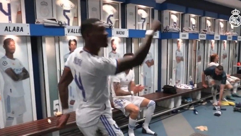 Ο Καρίμ Μπενζεμά ίσα που μπορούσε να σηκωθεί από τη θέση του, ωστόσο, ο Ντάβιντ Αλάμπα τον έριξε τον χορό του στους ρυθμούς της μουσικής που ακουγόταν.