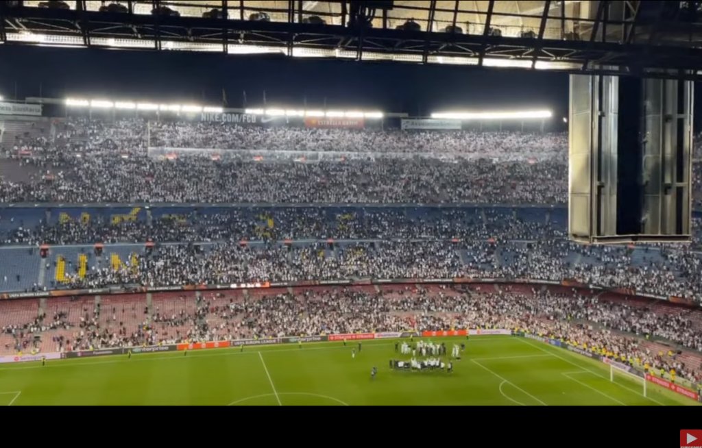 Μια ανεπανάληπτη ατμόσφαιρα δημιούργησαν οι 30.000 οπαδοί της Άιντραχτ Φρανκφούρτης, που βρέθηκαν στις εξέδρες του "Καμπ Νόου", για τον επαναληπτικό με την Μπαρτσελόνα, στα πλαίσια των προημιτελικών του Europa League.