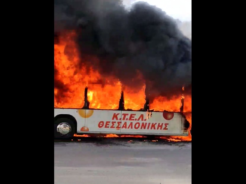 Οι επιβάτες και ο οδηγός πρόλαβαν και εγκατέλειψαν άμεσα το φλεγόμενο λεωφορείο και δεν κινδύνευσαν.