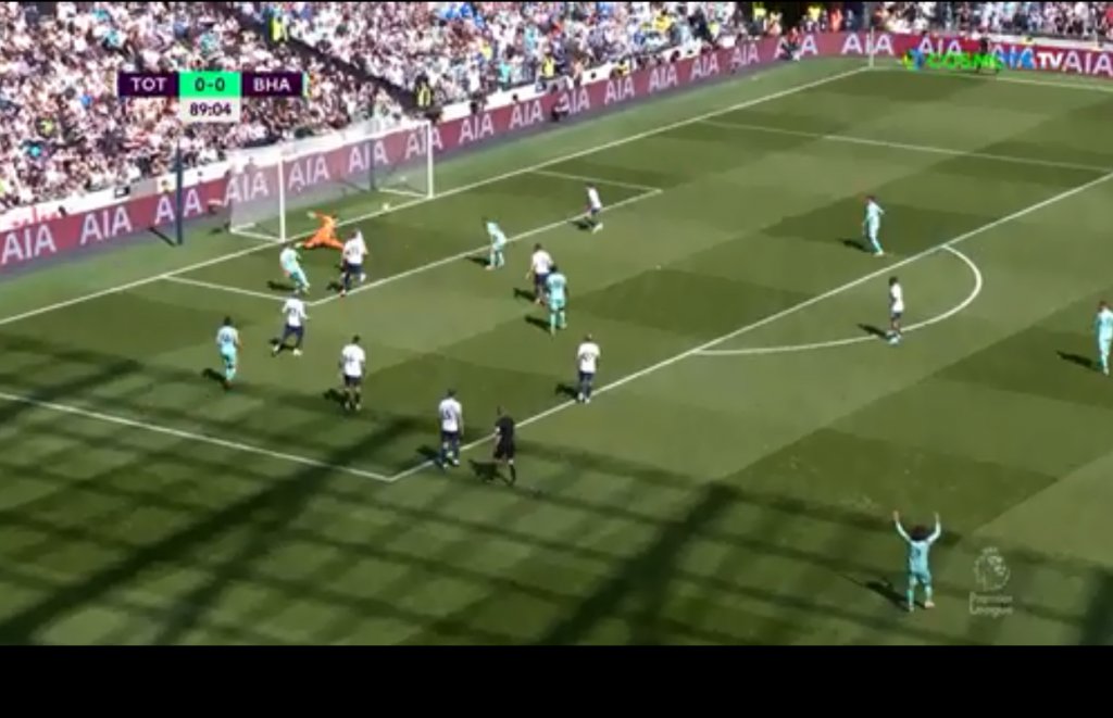 Η Μπράιτον ήταν καλά οργανωμένη στον αγωνιστικό χώρο, έπαιξε με τόλμη βγαίνοντας στην επίθεση στο πρώτο ημίχρονο από τη στιγμή που η Τότεναμ δεν... ξυπνούσε και είχε καταφέρει να μπλοκάρει οτιδήποτε δημιουργικό για το λονδρέζικο σύνολο. Ο κόσμος της Τότεναμ στο δεύτερο μέρος άρχισε να ζητάει περισσότερη ένταση στο ματς και περίμενε να δει κάτι διαφορετικό από τους παίκτες. Ο Σον στο 50ο λεπτό βρέθηκε σε ευνοϊκή θέση στην περιοχή όμως το σουτ που επιχείρησε κόντραρε. Το ίδιο συνέβη και στο 58' με τον Νοτιοκορεάτη να κοντρολάρει προτού κάνει το χαμηλό πλασέ, αλλά πάλι δεν έφτασε στο στόχο η μπάλα. Στο 63' ο Τροσάρ απάντησε στις ευκαιρίες με ένα σουτ που έφυγε ψηλά και ο Πότερ χειροκροτούσε βλέποντας τους ποδοσφαιριστές του να διατηρούν την ισορροπία στο ματς. Για μερικά... χιλιοστά στο 75' ο Ρεγκιλόν δεν πρόλαβε το γύρισμα του Κέιν από δεξιά, ο Μόουρα αμέσως μετά με σχεδόν ίδια κίνηση είδε τον Σάντσες να μπλοκάρει τη μπάλα χαμηλά. Η απόλυτα ανταγωνιστική Μπράιτον κατάφερε να μην επιτρέψει στους παίκτες του Κόντε να παίξουν κοντά στα καρέ της και στο 90' έγινε το «μπαμ». Ο Τροσάρ από αριστερά παρακολουθούσε την εξέλιξη της φάσης, πάτησε περιοχή παίρνοντας τον διάδρομο που... του άνοιξε ο Ντάιερ και με δεξί πλασέ έγραψε το 1-0! Έπειτα από τέσσερις διαδοχικές νίκες η Τότεναμ είδε να της έρχεται ένα πολύ κακό αποτέλεσμα στο θέμα της 4άδας.