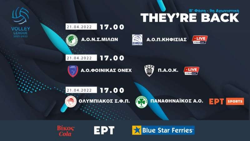 Ανακοινώθηκε τo πρόγραμμα, οι διαιτητές και οι τηλεοπτικές μεταδόσεις της 9ης αγωνιστικής της Β φάσης του πρωταθλήματος Volley League 2021-22.
