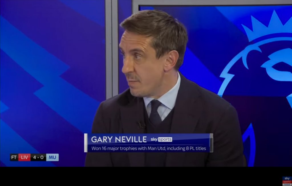 Στη συνέχεια, ο Νέβιλ χρησιμοποίησε πιο σκληρά λόγια: "Είναι προβλέψιμο πλέον. Υπάρχουν ορισμένοι καλοί και ταλαντούχοι ποδοσφαιριστές στο ρόστερ. Δεν έχω ιδέα πως να εξηγήσω το γεγονός ότι έχοντας τερματίσει στη δεύτερη θέση της Premier League πέρσι, φτάσαμε στο σημείο η ομάδα να είναι στη χειρότερη κατάστασή της εδώ και 42 χρόνια που την παρακολουθώ. Δεν έχω ξαναδεί την ομάδα τόσο κακή όσο είναι τώρα. Δεν έχω ξαναδεί τη Γιουνάιτεντ να είναι τόσο κακή σε ένα παιχνίδι. Οι παίκτες είναι διαλυμένοι ψυχολογικά. Ορισμένοι από αυτούς είναι καλοί και έχουν ταλέντο, αλλά είναι τελειωμένοι για φέτος. Ένα χάλι".