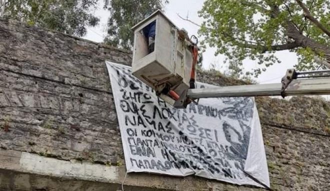 Σύμφωνα με το atpreveza.gr, συνεργεία του Δήμου κινήθηκαν άμεσα και κατέβασαν το συγκεκριμένο πανό.