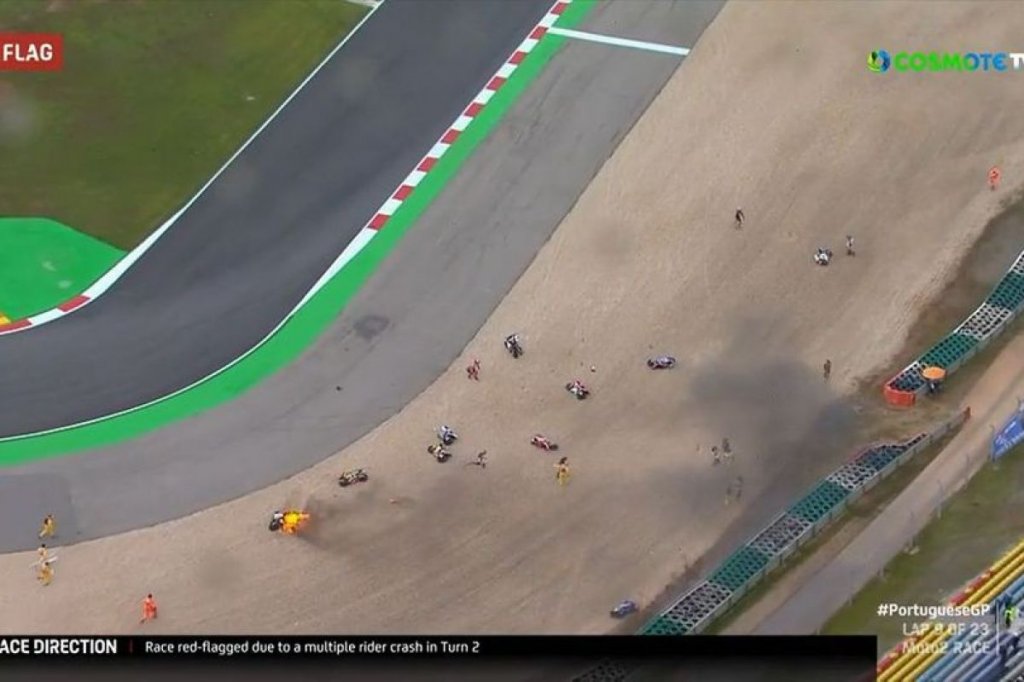 Ο αγώνας Moto 2, στην Πορτογαλία, σημαδεύτηκε από μια τρομερή καραμπόλα, από την οποία δέκα αναβάτες βγήκαν εκτός πίστας.