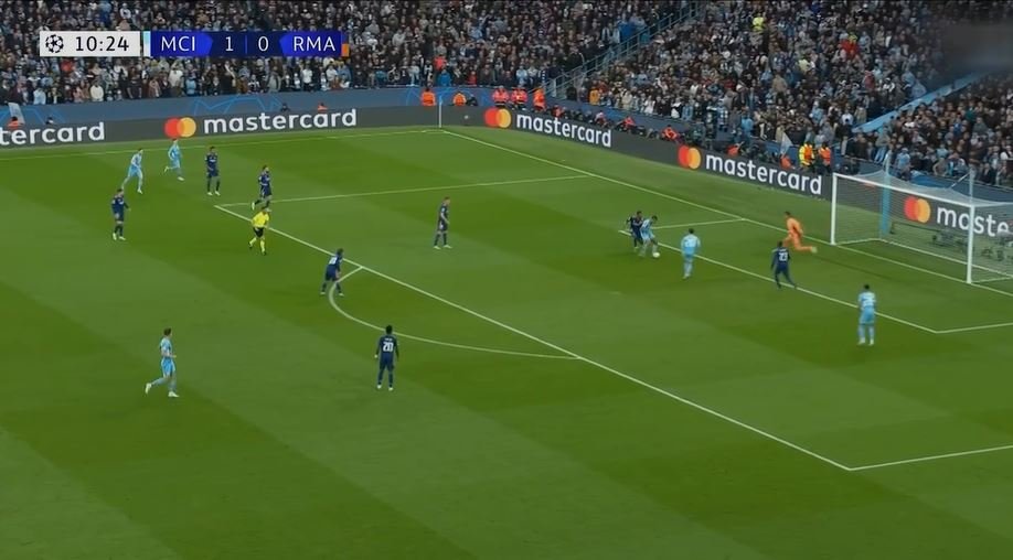 Ο Ντε Μπρόινε έκανε τη σέντρα από αριστερά, ο Ζεσούς έχοντας τον Αλάμπα στην πλάτη του γύρισε όμορφα και από κοντά πλάσαρε για το 2-0.