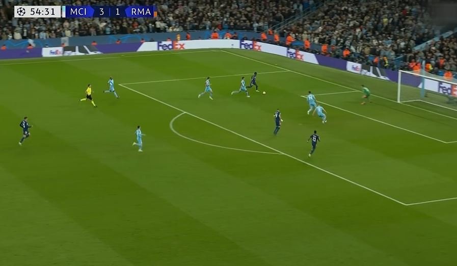 Ο Βινίσιους πήρε την μπάλα στο κέντρο κι έκανε μαγική κούρσα από αριστερά, πάτησε περιοχή και πλάσαρε με το δεξί για το 3-2.