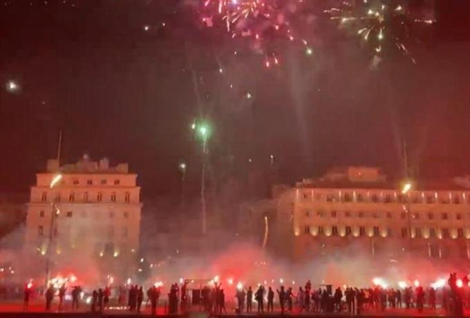 Με αφορμή την ίδρυση του συνδέσμου τους πριν από 35 χρόνια, οι οργανωμένοι φίλοι της ομάδας δημιούργησαν απίθανη ατμόσφαιρα ανάβοντας δεκάδες καπνογόνα και πετώντας βεγγαλικά στη μαρίνα της πόλης.