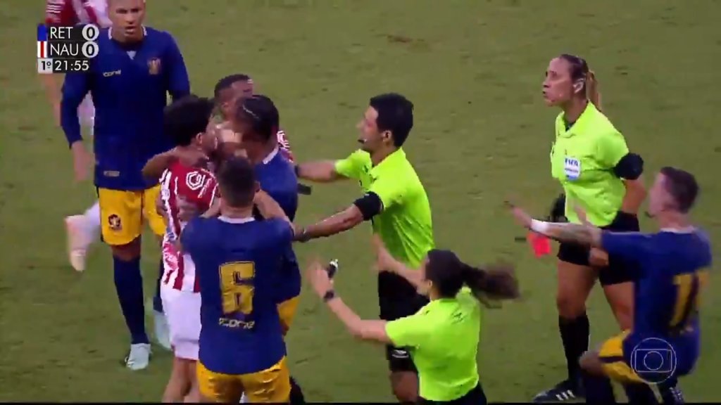 Η γυναίκα διαιτητής του αγώνα Ντέμπορα Σεσίλια, αφού εξέτασε το VAR στη συνέχεια έβγαλε κόκκινη κάρτα στον παίκτη της φιλοξενούμενη ομάδας Ζεάν Κάρλος, για χτύπημα αντιπάλου εκτός φάσης. Ο Ζεάν Κάρλος μόλις είδε την κόκκινη κάρτα... τρελάθηκε και όρμησε στη διαιτητή! Η Σεσίλια στο φύλλο αγώνα έγραψε ότι «ο ποδοσφαιριστής κινήθηκε εναντίον μου προσπαθώντας να μου επιτεθεί». Από την πλευρά του ο παίκτης, σε δηλώσεις που έκανε στην Globo αρνήθηκε πως είχε τέτοια πρόθεση.
