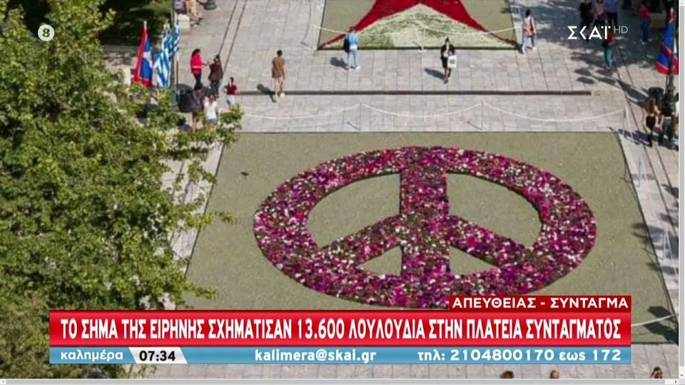 Το σήμα της Ειρήνης σχημάτισαν με 13.600 λουλούδια στην Πλατεία Συντάγματος (VIDEO)