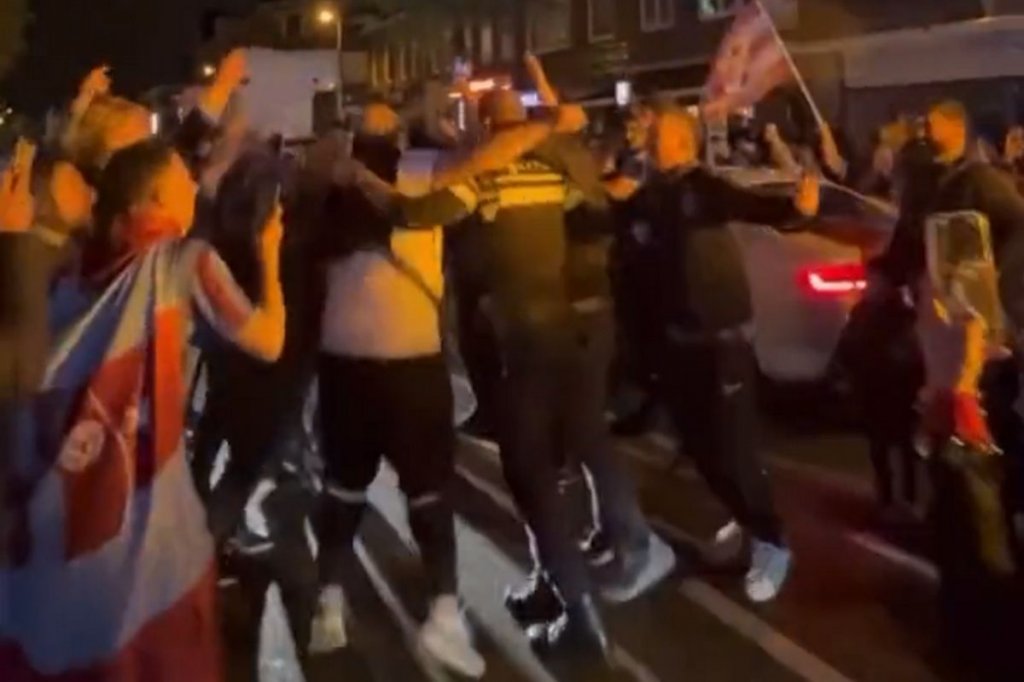 Στο τέλος ωστόσο, τα όργανα της τάξης έγιναν ένα με τους φιλάθλους και πανηγύρισαν μαζί τους.