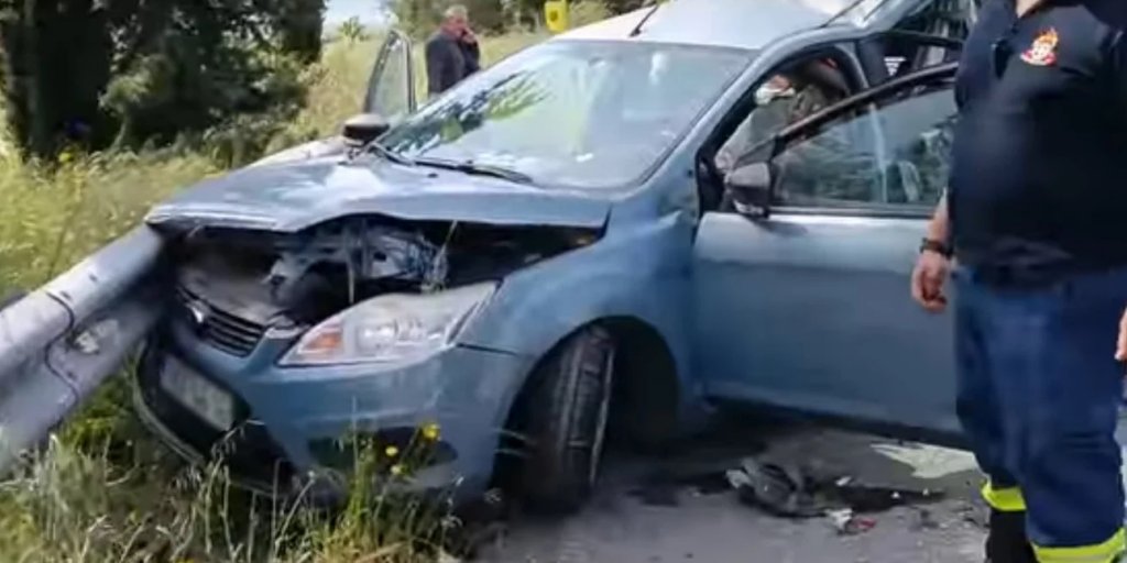 Το λευκό Renault Megane μετά τη πρόσκρουση κάνει περιστροφή μέσα στο δρόμο και ακινητοποιείται λίγα μέτρα πιο κάτω. Αμέσως ο νεαρός οδηγός ανοίγει την πόρτα και βγαίνει έξω.