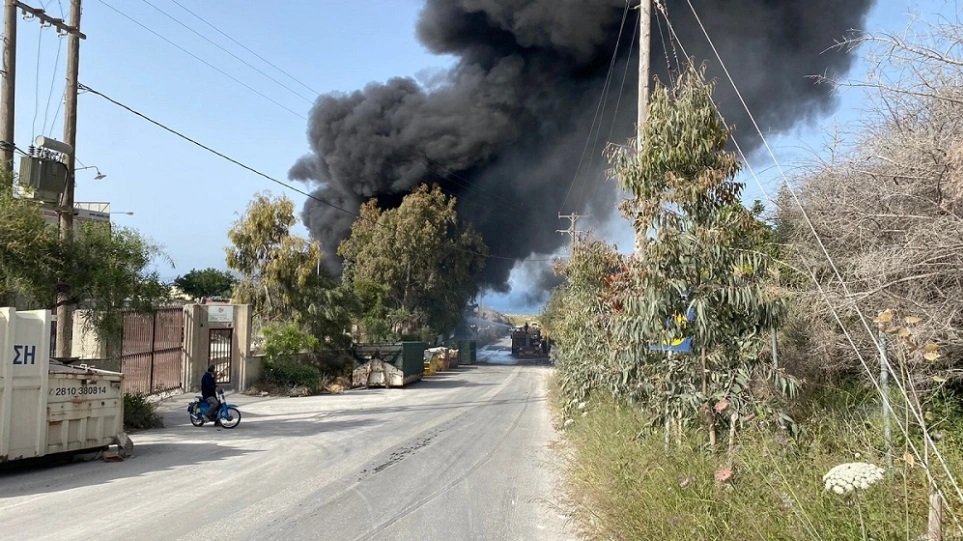 Σε εξέλιξη βρίσκεται μεγάλη φωτιά στην Βιομηχανική Περιοχή Ηρακλείου.
