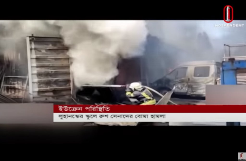 Ο Γκαϊντάι επεσήμανε ότι οι ρωσικές δυνάμεις έριξαν χθες Σάββατο το απόγευμα μία βόμβα στο σχολείο στο οποίο είχαν βρει καταφύγιο περίπου 90 άνθρωποι, με αποτέλεσμα να ξεσπάσει πυρκαγιά.
