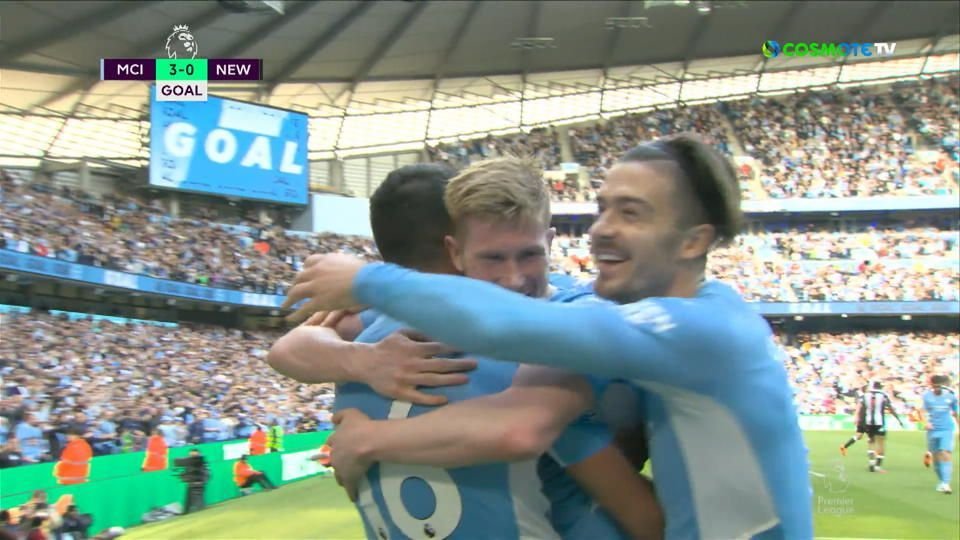 Και στο 61ο λεπτό ο Nτε Μπρόινε εκτέλεσε το κόρνερ από αριστερά και ο Ρόδρι με κεφαλιά στο πρώτο δοκάρι έγραψε το 3-0.