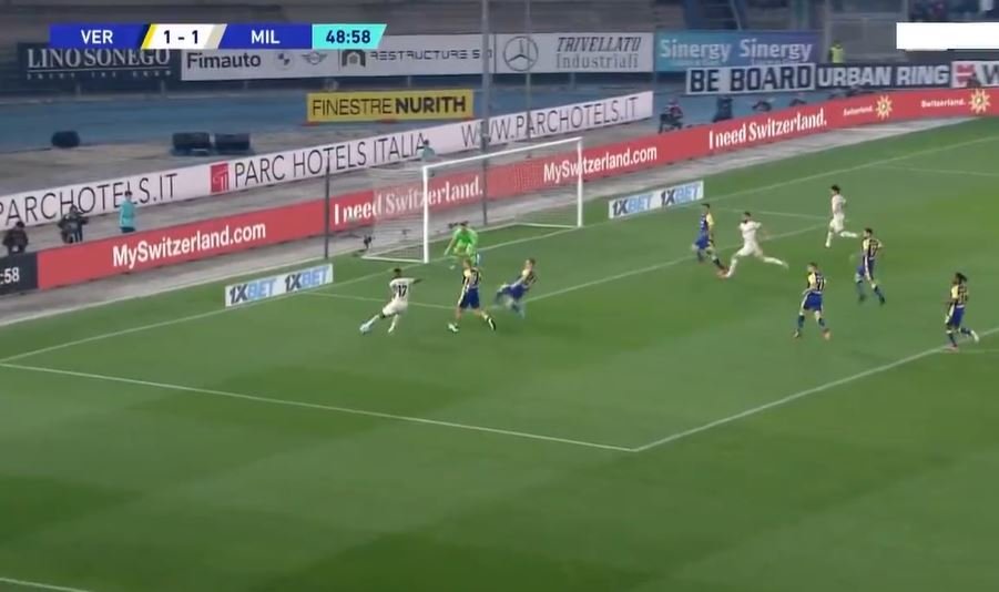 Στο 49ο λεπτό μετά από κόρνερ της Βερόνα, ο Λεάο έφυγε σαν άλογο στην κόντρα, άδειασε τον Μπαράκ και από αριστερά έδωσε έτοιμο γκολ στον Τονάλι που εξ επαφής έγραψε το 1-2 με προβολή.