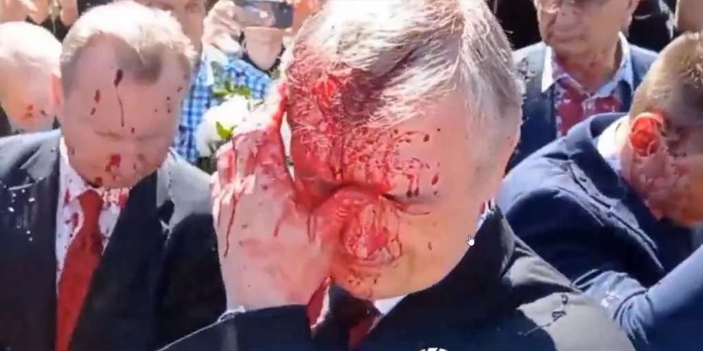 Την ώρα που ο πρέσβης της Ρωσίας, Σεργκέι Αντρέγιεφ, κατέθετε στεφάνι στο Μαυσωλείο των Σοβιετικών Στρατιωτών στην πρωτεύουσα της Πολωνίας, κάποιος από τους διαδηλωτές του πέταξε την κόκκινη μπογιά, ενώ ακούγονταν φωνές: «Αυτό είναι για το αίμα των αθώων και τον πόλεμο, Φασίστες»!