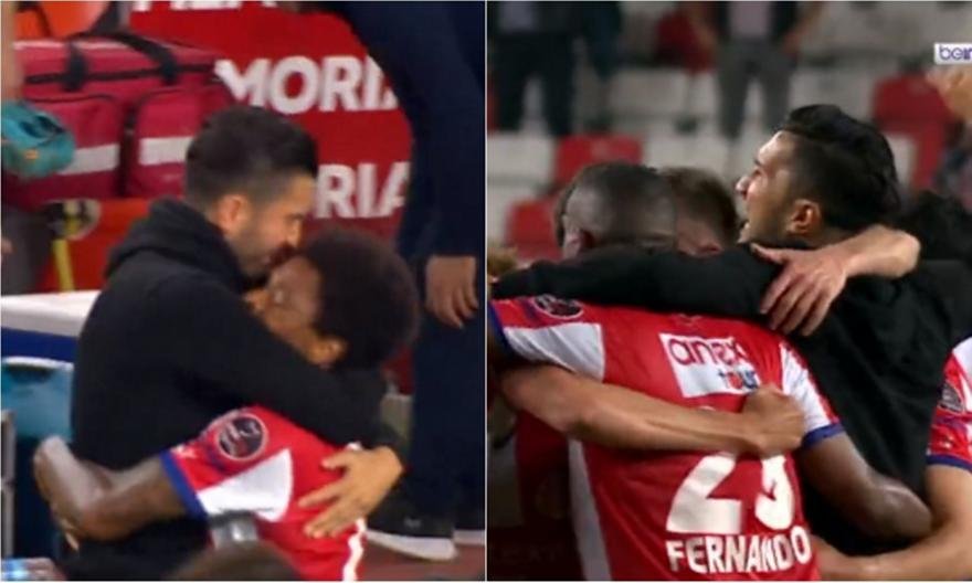 Μετά την αναμέτρηση, ο Σαχίν έπλεε σε πελάγη ευτυχίας και και έσπευσε να μοιραστεί τα συναισθήματά του με... όλη την ομάδα, μοιράζοντας αγκαλιές!