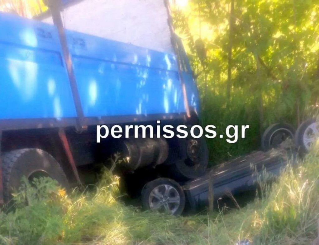 Από θαύμα σώθηκαν οδηγός και συνοδηγός ενός αυτοκινήτου που συγκρούστηκε με φορτηγό στο Μούλκι Αλιάρτου.