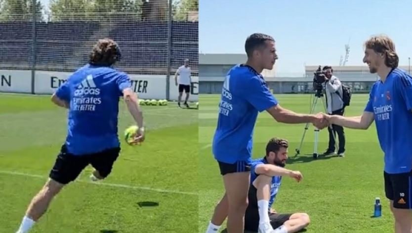 Όντας έτοιμος και για την ανανέωση της συνεργασίας του με την Ρεάλ μέχρι το 2023, ο Μόντριτς σκοράρει με εξωτερικό φάλτσο στην προπόνηση της ομάδας και αποθεώνεται από τους συμπαίκτες του.
