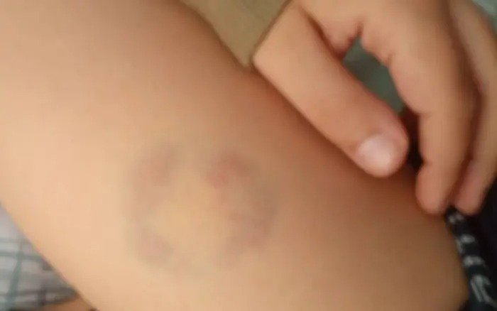 "Την περασμένη Τρίτη, όταν πήγα να πάρω το παιδί μου από το σχολείο, είδα με έκπληξη ότι αυτό έφερε γρατσουνιές πίσω από το δεξί αυτί του και στους καρπούς των χεριών του. Ρώτησα τη δασκάλα του γιου μου τί συνέβη, καθώς το παιδί μου όταν έφυγε το πρωί από το σπίτι μας δεν έφερε κάποιο τραύμα. Η ίδια μου απάντησε ότι τα συγκεκριμένα τραύματα προκλήθηκαν από την προσπάθεια που έκανε η Διευθύντρια και δασκάλα του σχολείου να απομακρύνει από κοντά της το παιδί μου, το οποίο της είχε πιάσει τα μαλλιά της. Η έκπληξή μου συνεχίστηκε όταν έφτασα σπίτι μας και άλλαξα ρούχα στο γιο μου, και πήγα να τον κάνω μπάνιο, όπου εκεί, κατεβάζοντας τη φόρμα του, είδα μια τεράστια μελανιά - δαγκωματιά στο μέσο του ποδιού του, μάλιστα πρόκειται για μια μελανιά (όπως βλέπετε και στις φωτογραφίες) όπου φαίνονται ίχνη δοντιών. Αυτό με έκανε αμέσως να καταλάβω ότι κάποιος δάγκωσε το γιο μου δυνατά στο σημείο αυτό.